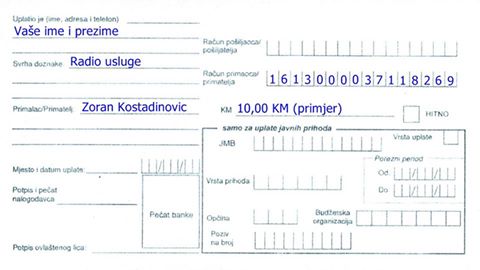 Vaše muzičke želje možete nam pisati putem sms poruka ali pored sms poruka postoji i jeftinija opcija a to je da uplatite željeni iznos. (na primjer ako uplatite 10KM, imate 10 muzičkih želja ili 10 Eura, 20 Muzičkih želja. Dakle jedna muzička želja je 1KM ili 0,50 Eura. Onda nam vaše muzičke zelje pišete putem društvenih mreža facebook (na facebooku Koprivljanski radio Official) ili putem Skype (Na Skype-u na adresi Koprivljanski.radio) Vi nam pišete a mi odbijamo od iznosa koji ste prethodno uplatili. Uputsvo za uplatu se nalazi ispod.